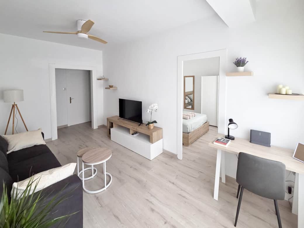 Apartamento moderno y totalmente amueblado de 2 habitaciones en Sant Antoni, uno de los barrios más deseados del Eixample de Barcelona. Luminoso, acogedor y con mucho estilo, es perfecto por su ubicación cerca de todo. Su interior ha sido cuidadosamente diseñado para ofrecer el máximo confort, con mucha luz natural, colchones y ropa de cama de calidad, cocina completamente equipada con electrodomésticos modernos, WiFi de alta velocidad, Smart TV y ventiladores de techo que aportan frescor y bienestar. El baño, elegante y funcional, transmite una sensación de limpieza y confort.